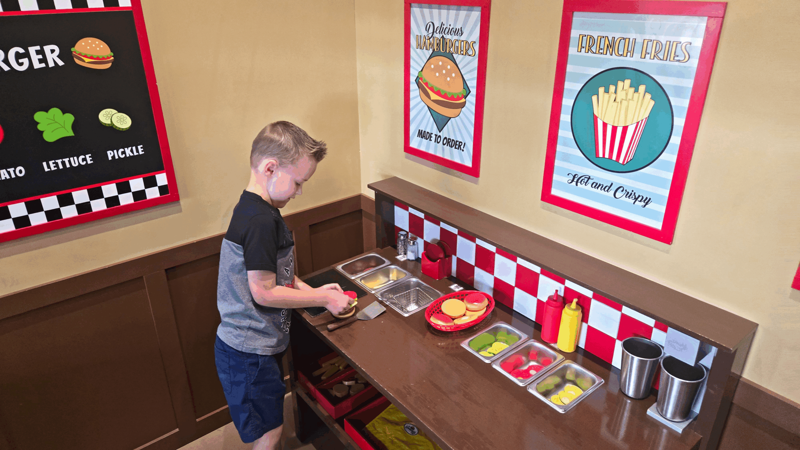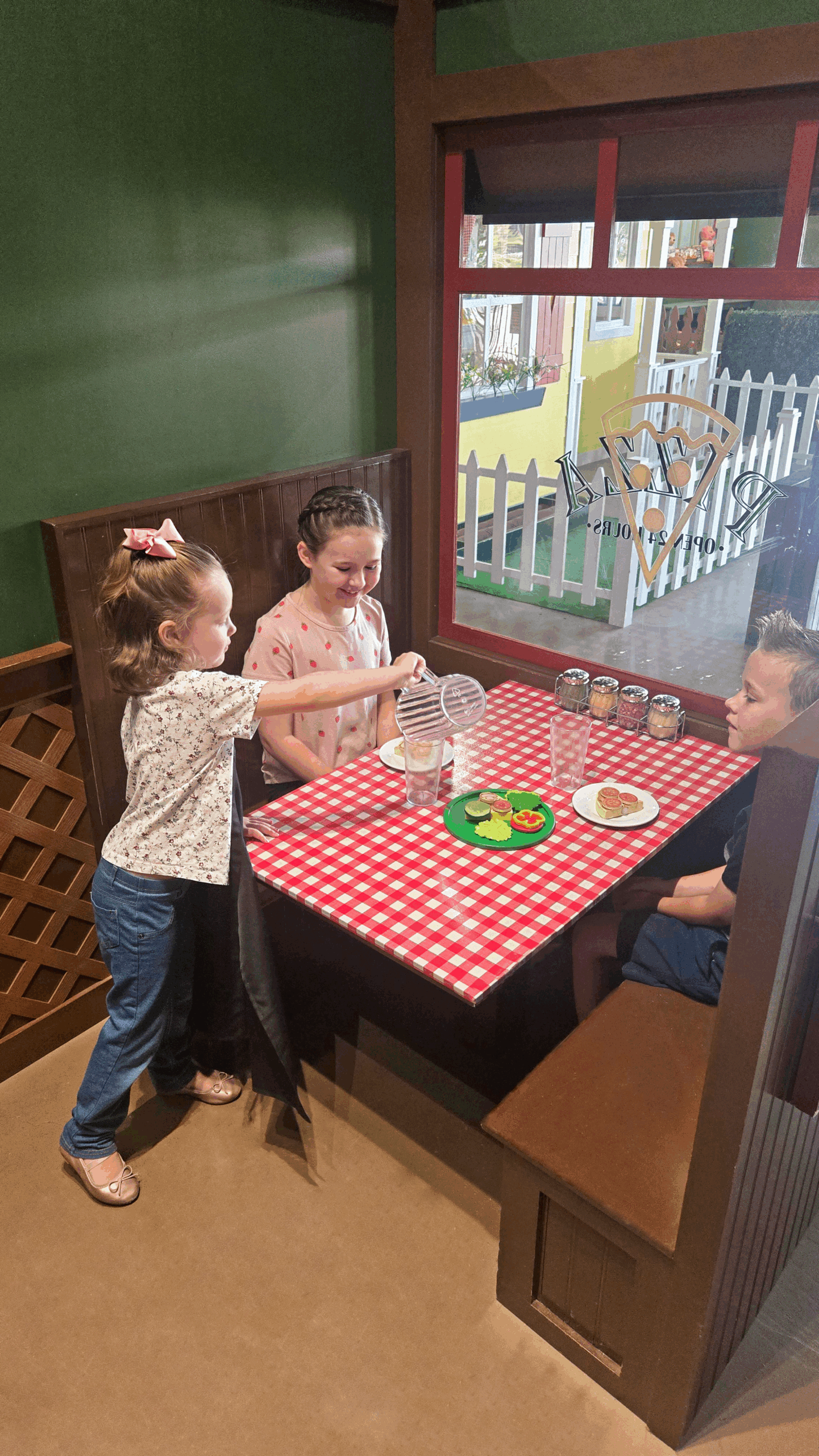 Designed as a safe, clean, and fully immersive environment, our whimsical play town encourages creativity, social development, and cognitive growth—all while kids are having the time of their lives.